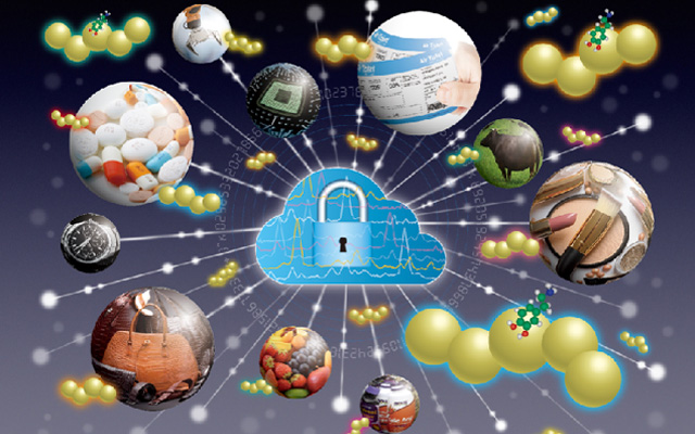 ステルスタグ(液体)を印刷やコーティングなどの方法で製品に導入し、小型のラマン分光器でステルスタグ特有の表面増強ラマン散乱スペクトルを読み取ります。